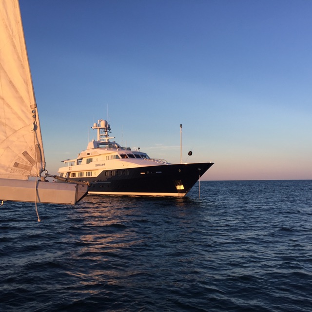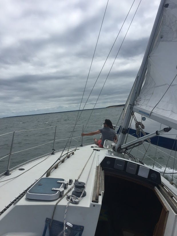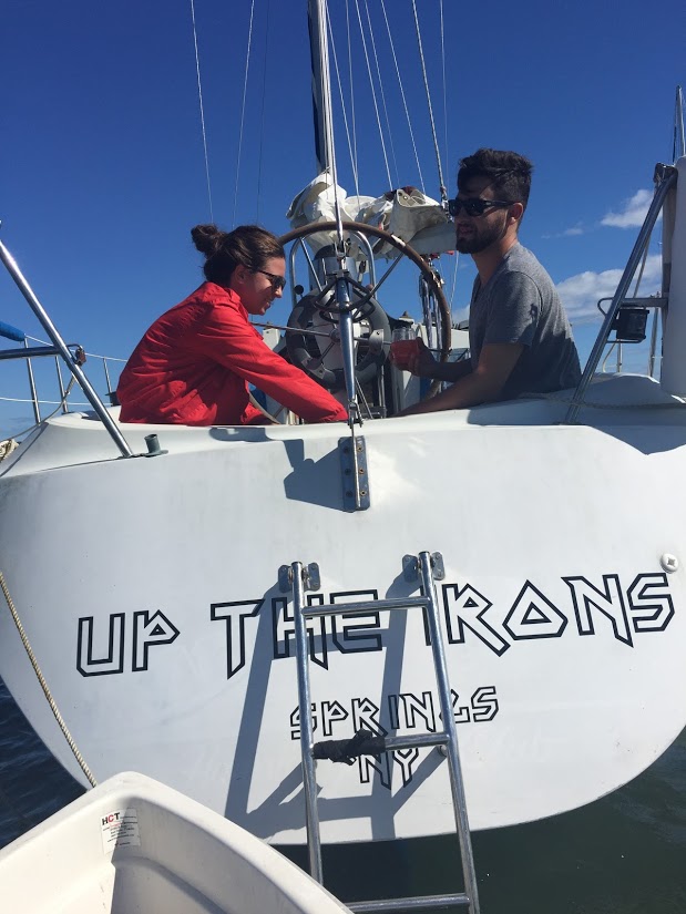 This is what we have been waiting for. SUMMER CAN BEGIN NOW. Go out there early again per usual now. Checked on the keel paint job and got ready for the travel lift. Once the boat was picked up, painted the hull where the stands had been and the bottom of the keel and then SPLASH. Engine wasn’t turning over, had to charge the batteries for a minute and then started the diesel up. Moved into a slip and then went and bought new 15 amp fuse to replace the one we had crushed by stepping on. Quick vacuum of the cabin at the dock before putting back the mattress and floorboards (need to frame out the battery and support the floor boards by the stairs) and then motored out to a mooring. Got the main up and checked the time. Still early in the day, so we decided to just go for it. Sailed out of Three Mile no motor the whole way out of the channel into Gardiners Bay and then sailed over to Mark Cuban’s Fountainhead. Couple tacks and then headed home.