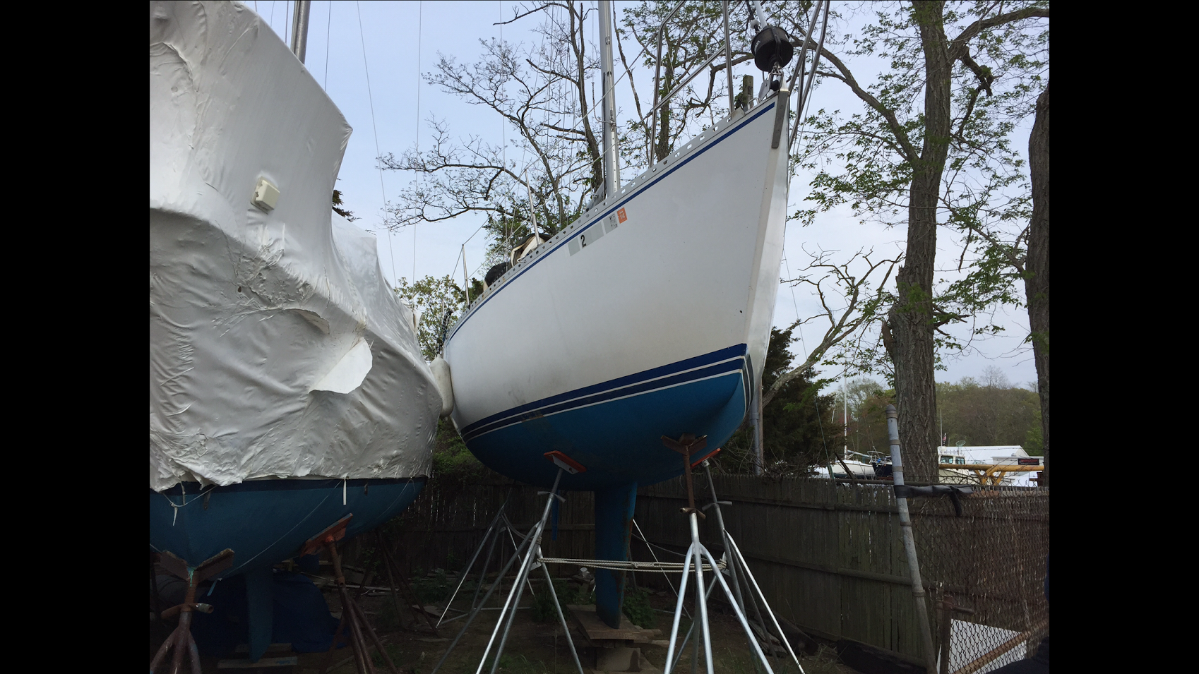 Easter Sunday we drove out to the boat yard in the morning. There was so little traffic. It was wonderful. The yard looked good. “The boats were on the stands” No surprises. We climbed up the ladder and opened up the Kirie. No water taken on. Great sign. Took stock of what needs to be done. (All the projects we didn’t get to last year)